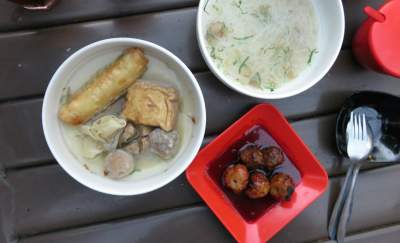 Penyajian baksonya cukup unik dan menggoda. Pasalnya, Anda tak cuma disuguhi bakso bakar yang kenyal, manis, asin, gurih, dan sedap, tapi kuahnya bakso yang berkaldu dan menyegarkan.